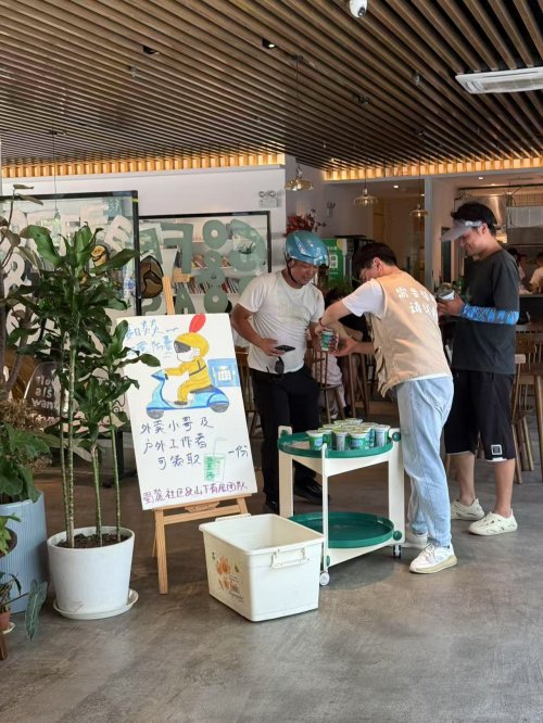 “平时忙得顾不上喝水,这梨汤太及时了!” 快递员张师傅刚送完附近小区的快件,就赶来领取物资。张师傅说“累了能去充电歇脚,现在还能领到爱心物资,感觉被实实在在惦记着。” 此次活动正是社区关爱新就业群体的常态化举措之一。