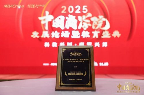 北京师范大学经济与工商管理学院MBA项目荣获“2025年度中国商学院MBA项目TOP100”,数字企业管理MBA项目荣获“2025年度中国商学院特色MBA项目”,充分凸显了学院在教学改革突破、师资队伍建设提质、课程体系优化升级及人才培育成效等领域的雄厚底蕴与核心竞争力。