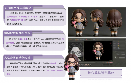 目前,元境项目已形成成熟的定制流程与产品体系,正逐步推进市场拓展。未来,团队计划进一步优化 AI 定制算法,拓展更多风格造型,并联动线下潮玩店、文创市集开展体验活动,让 AI 定制潮玩走进更多青年生活场景,以青春创意赋能文创产业升级。